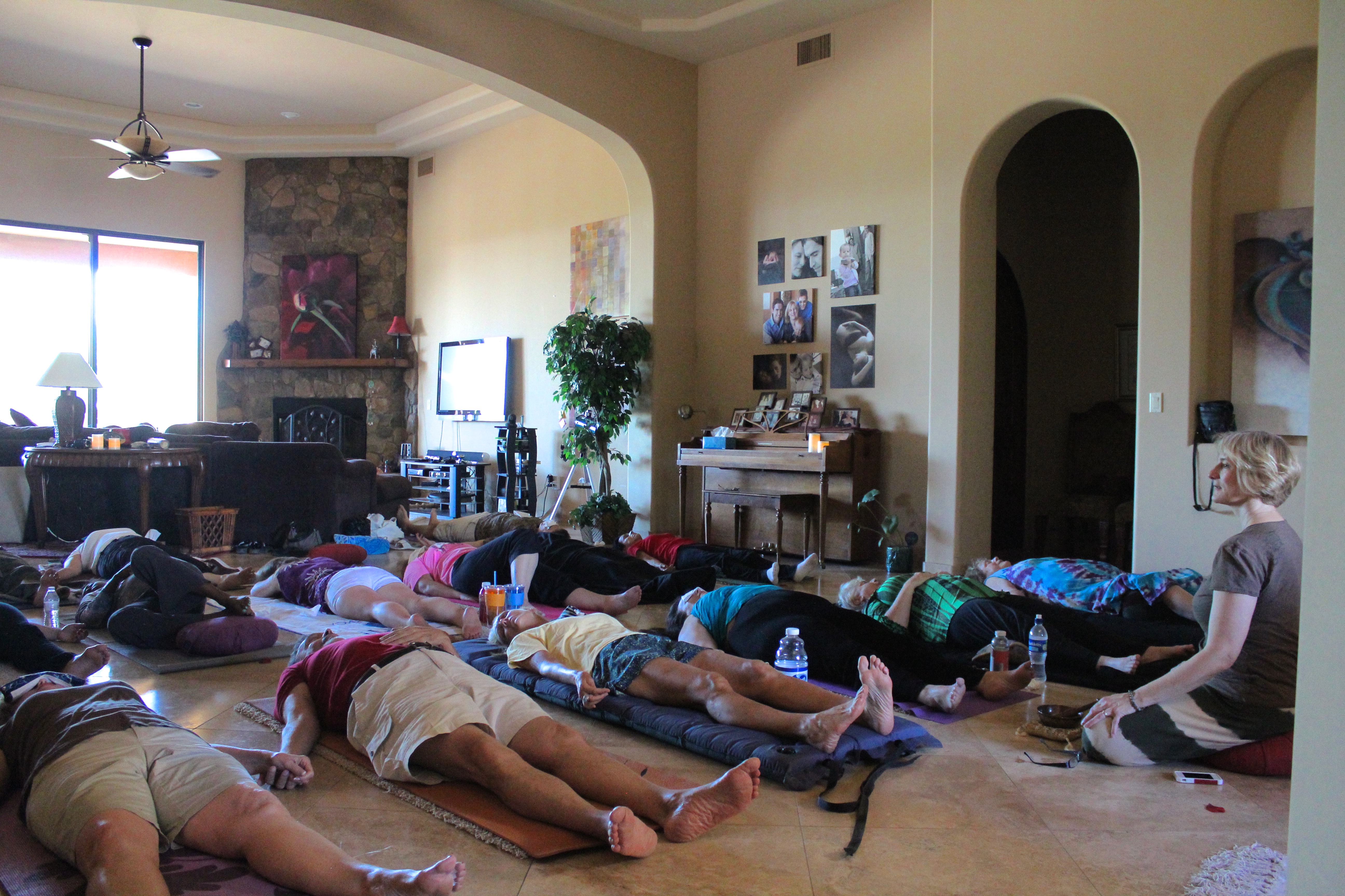 In our group breath sessions we are guided to use the Conscious Connected Breath process by certified facillitator Flora Maria Schule. Flora’s extensive background in leading groups in mind-body clearings and guided meditations using diaphragmatic breathwork takes participants deep into calmness and aliveness. In going into our core we begin to release emotional, mental, and physical stories that no longer serve us in being the absolute best we can be. Deep belly breathing reduces stress, and increases health by allowing the cells to be nourished by more oxygen, which in turn facilitates detoxing. Deep breaths also slow down the mental pace and help us focus better. Individuals have their own space to create the experience that is in their highest and best good.